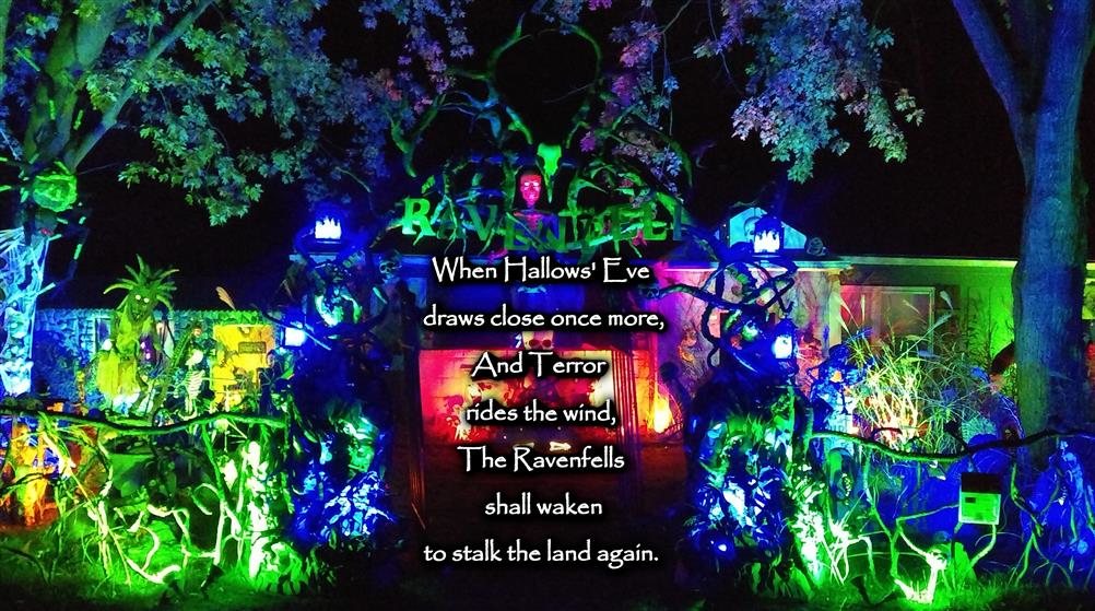 Ravenfell Manor is a majority DIY yard haunt based on the dark fantasy book series Ravenfell Chronicles: Origins by Brand J. Alexander. It is a gallery of enchantingly dark artistry. With a little fun mixed in.