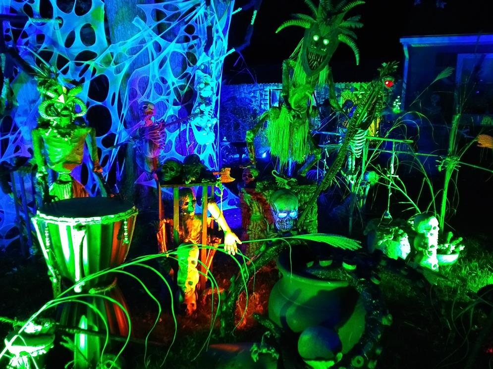 Very creative and detailed. Impressive amount of work put into transforming their yard into a Halloween haunt!